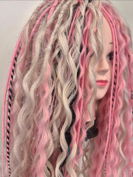 Kunstige dreads klar til påsætning. Køb sættet her og book tid til evt påsætning på Online booking.