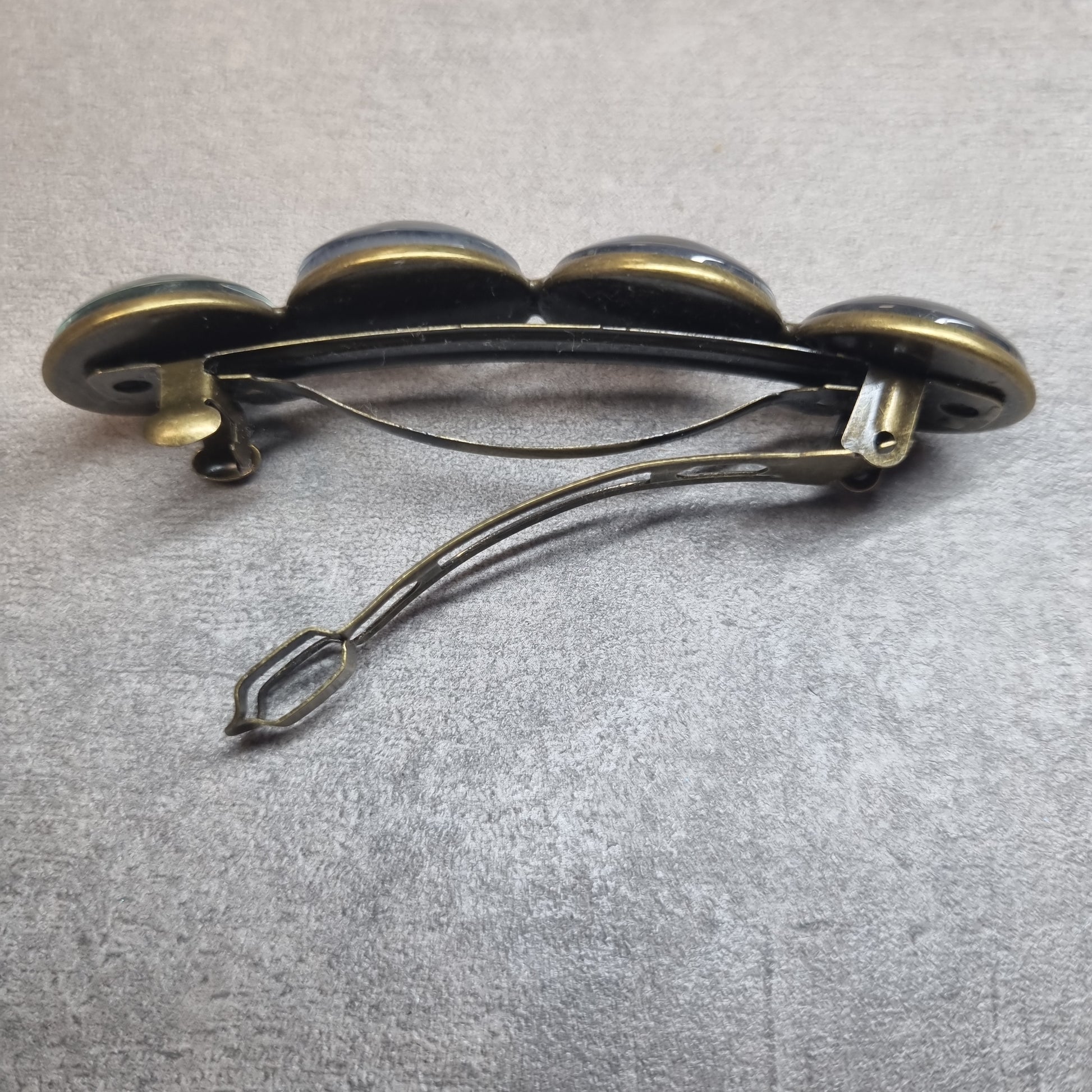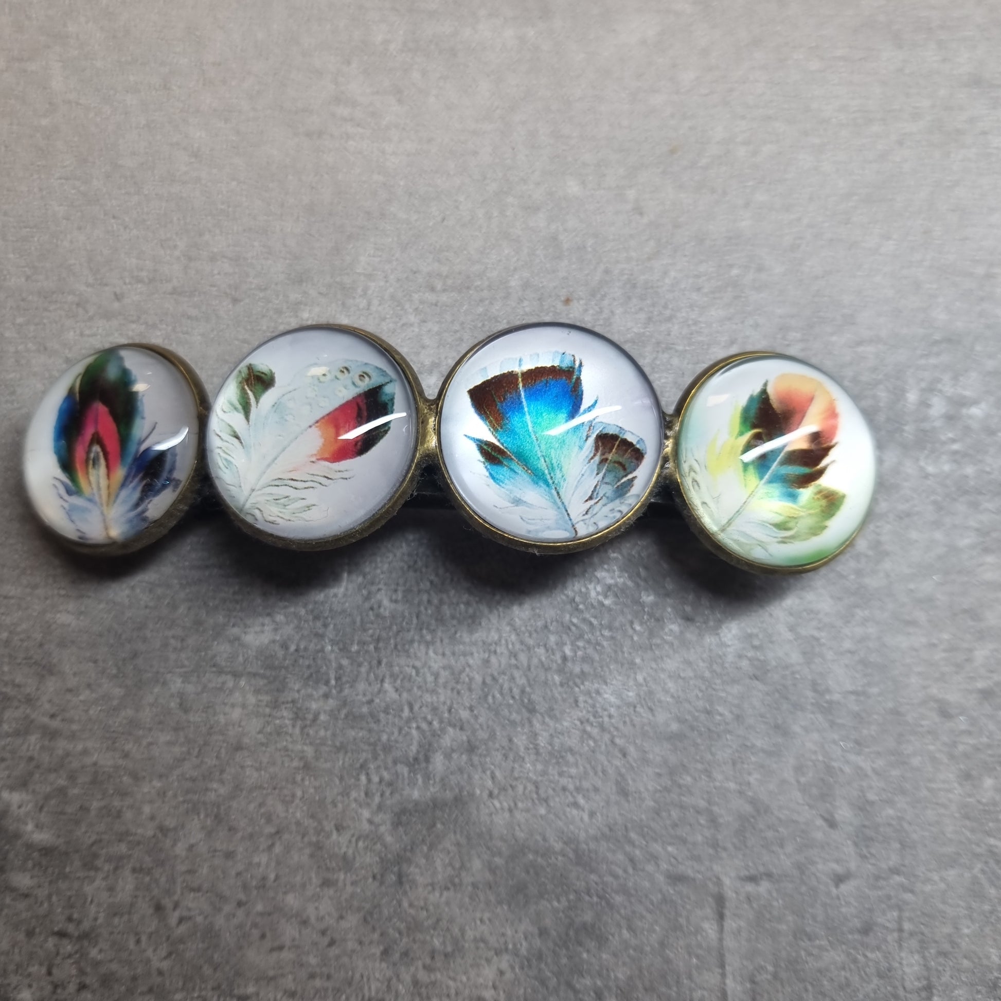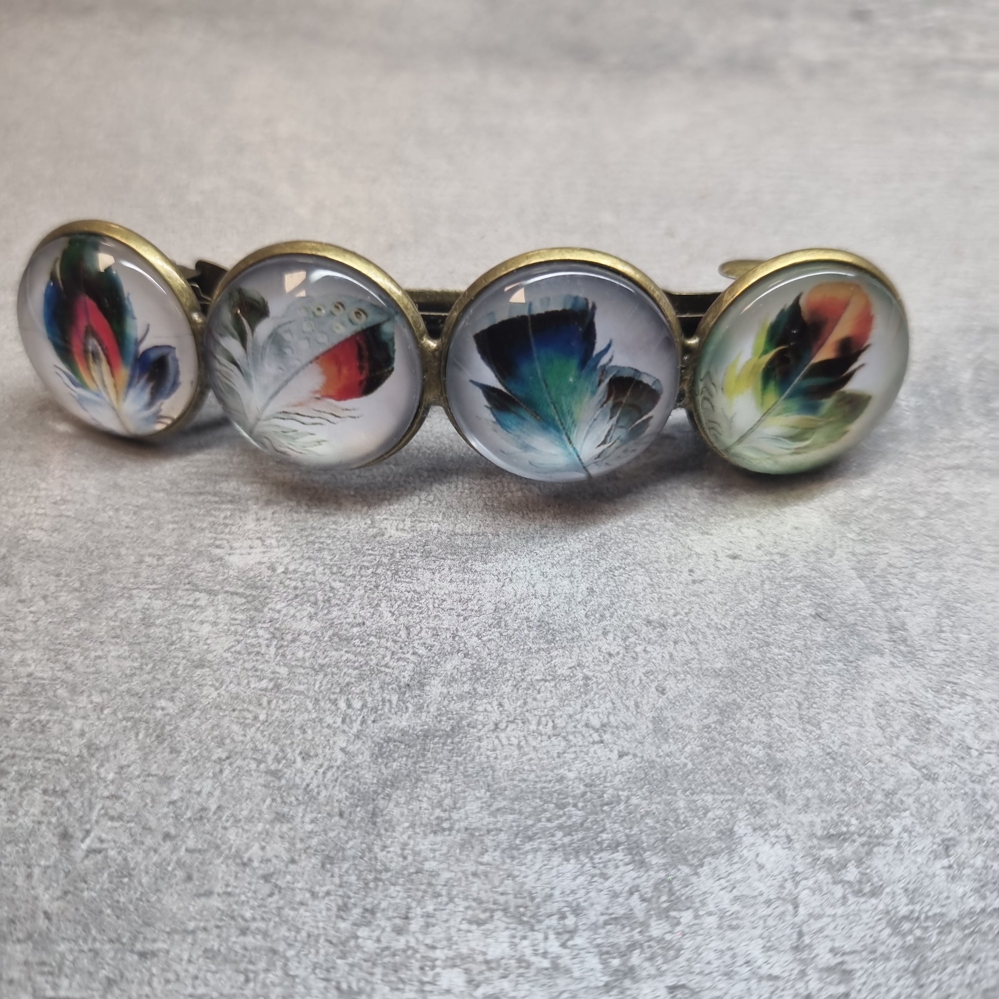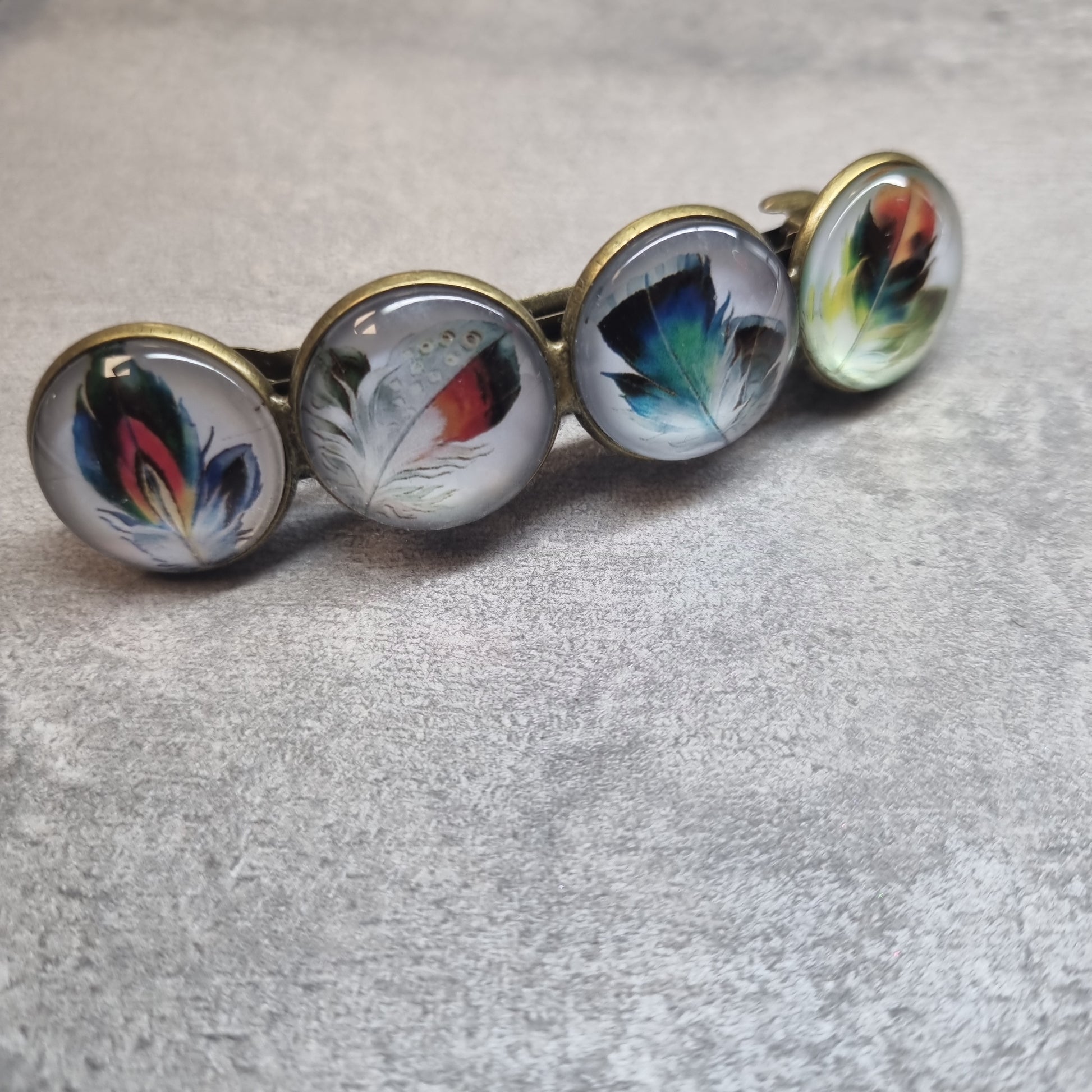 Solid håndlavet hårspænde med cabochons med fine fjer.